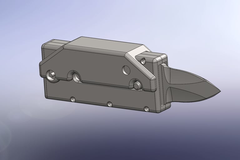 A simple prototype has been 3D-printed for proof-of-concept. I am working towards developing proficiency in Mastercam to produce a practical and sleeker, aluminum CNC machined iteration of my design.